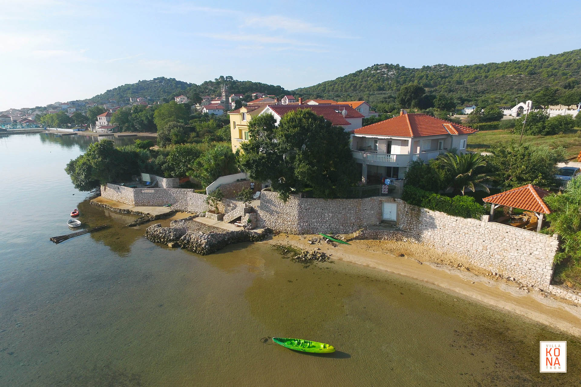 Villa Kona is situated on the sandy beach only 5 min from the centre of the picturesque town of Tkon. Ideal for a family holiday, romantic weekend or just a casual vacation, Villa Kona has something for everyone.
